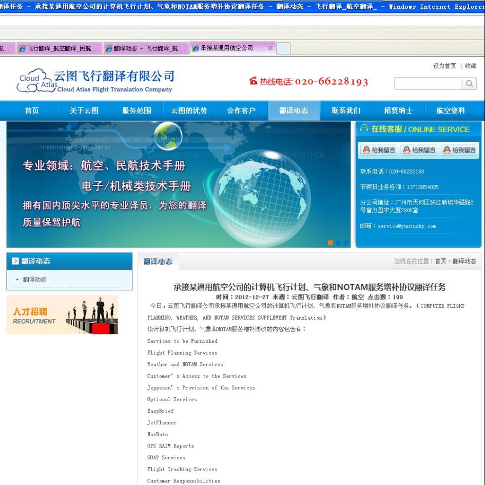 藍天飛行翻譯公司本著照顧的原則,給云圖翻譯時間讓處理網站復制問題,但是并未合理解決,特此公布曝光!!!!!本公司保留所有復制網頁的截圖,請你們好自為之。