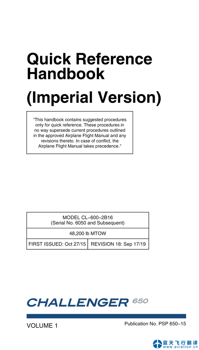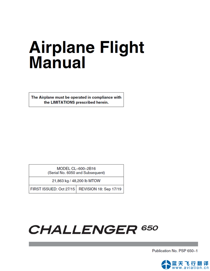 北京藍天飛行翻譯公司承接公務機公司龐巴迪挑戰者650全套飛行手冊翻譯任務 Bombardier Challenger 650 Flight Manuals Translation 本次承接的龐巴迪挑戰者650公務機飛行手冊有:挑戰者650飛行機組操作手冊(CL650 Flight Crew Operating Manual)、挑戰者650快速檢查單(CL650 Quick Reference Handbook)和挑戰者650飛機飛行手冊(CL650 Airplane Flight Manual)。版本日期為2019年9月17日第18版 REVISION 18: Sep 17/19。  挑戰者 650 Challenger 650  挑戰者 650 Challenger 650  挑戰者 650 Challenger 650  挑戰者 650 Challenger 650