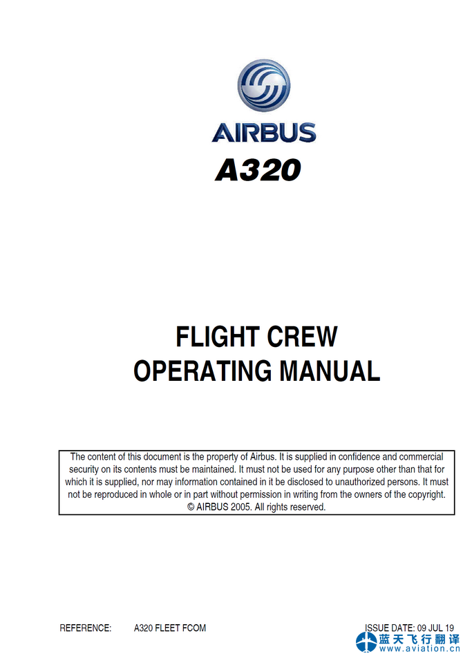 北京藍天飛行翻譯有限公司完成大型航空公司2019年7月9日版本空客A320NEO和A321NEO 飛行機組操作手冊翻譯任務 A320NEO and A321NEO FLIGHT CREW OPERATING MANUAL Translation