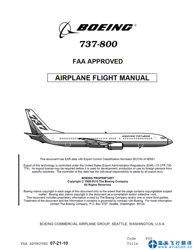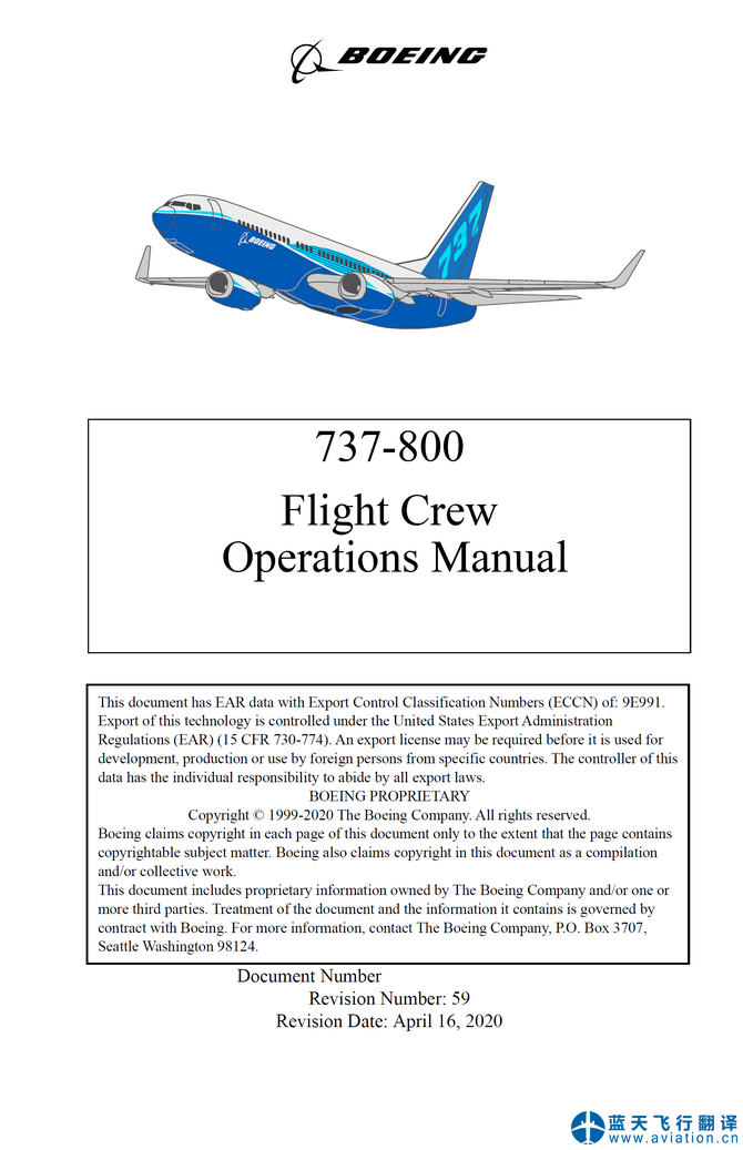 北京藍(lán)天飛行翻譯公司承接航空公司的737-800飛行機組使用手冊、快速檢查單和飛機飛行手冊翻譯任務(wù) 737-800 Flight Crew Operations Manual, Quick Reference Handbook and Airplane Flight Manual Translation