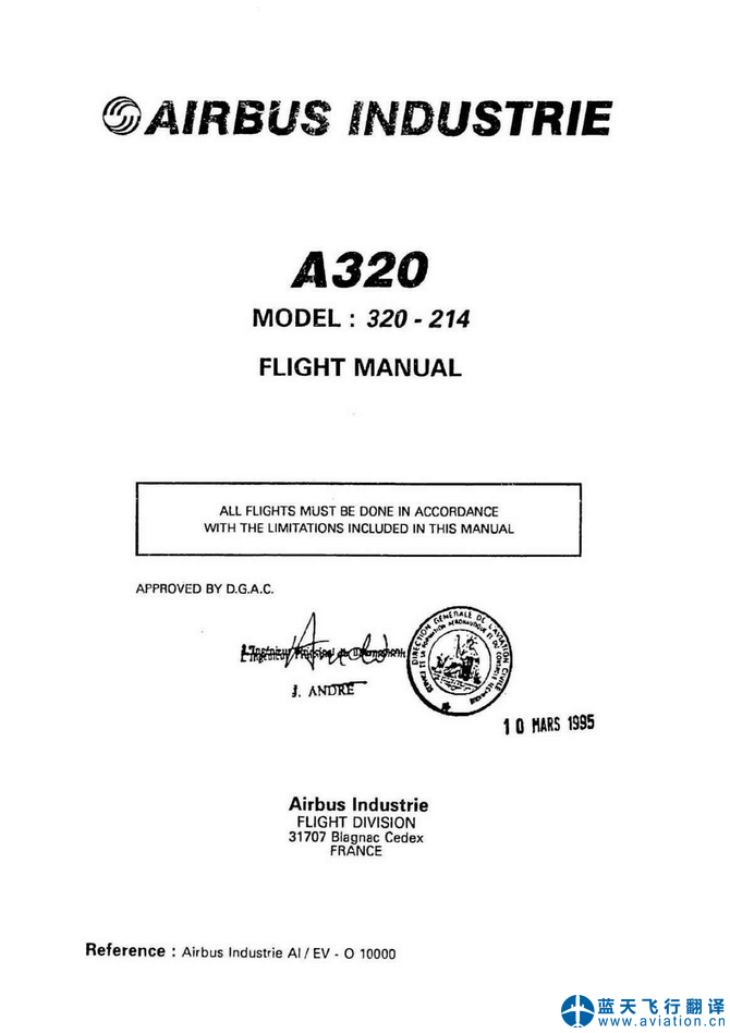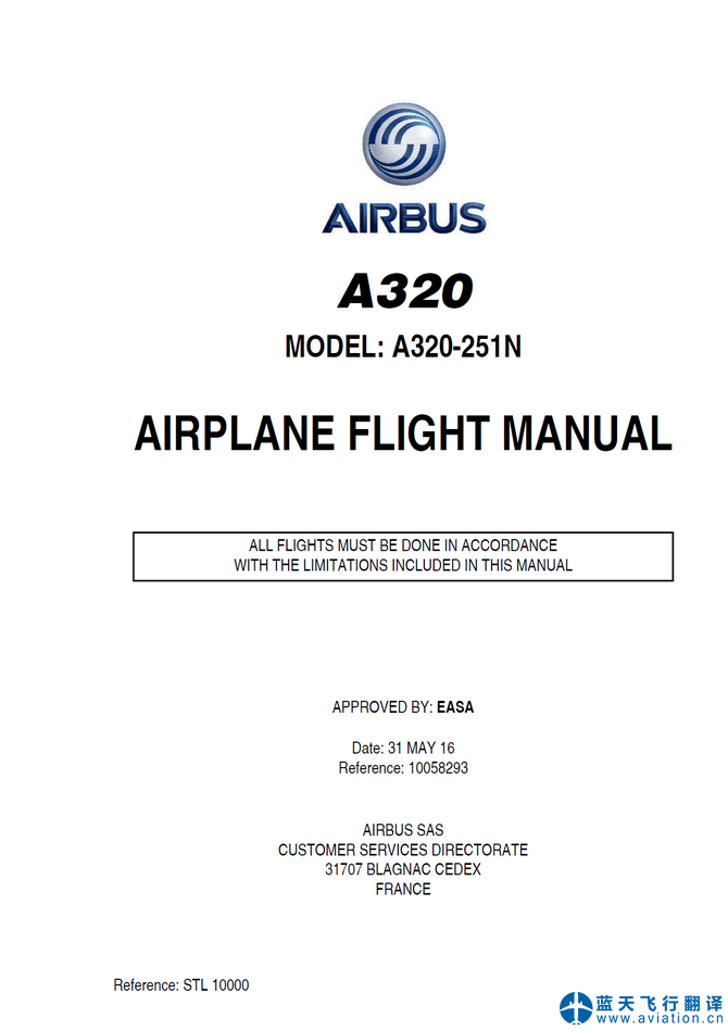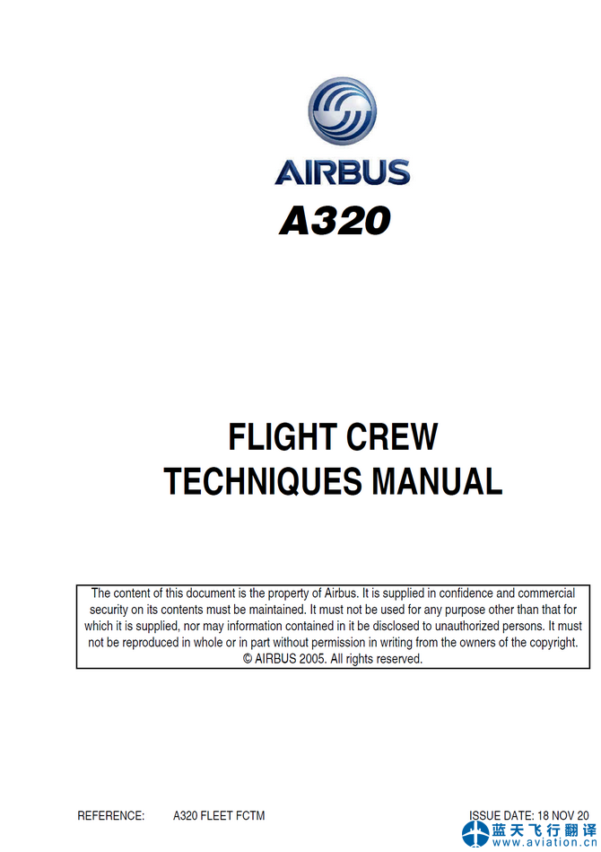 北京藍天飛行翻譯有限公司本次翻譯的A320飛行手冊總共包含10架飛機,構型為320-214、320-251N。A320飛行機組操作手冊修訂日期為2020年10月26日、A320快速檢查單修訂日期為2020年11月18日,A320飛機飛行手冊修訂日期為2020年11月10日,A320飛行機組技術手冊修訂日期為2020年11月18日。
